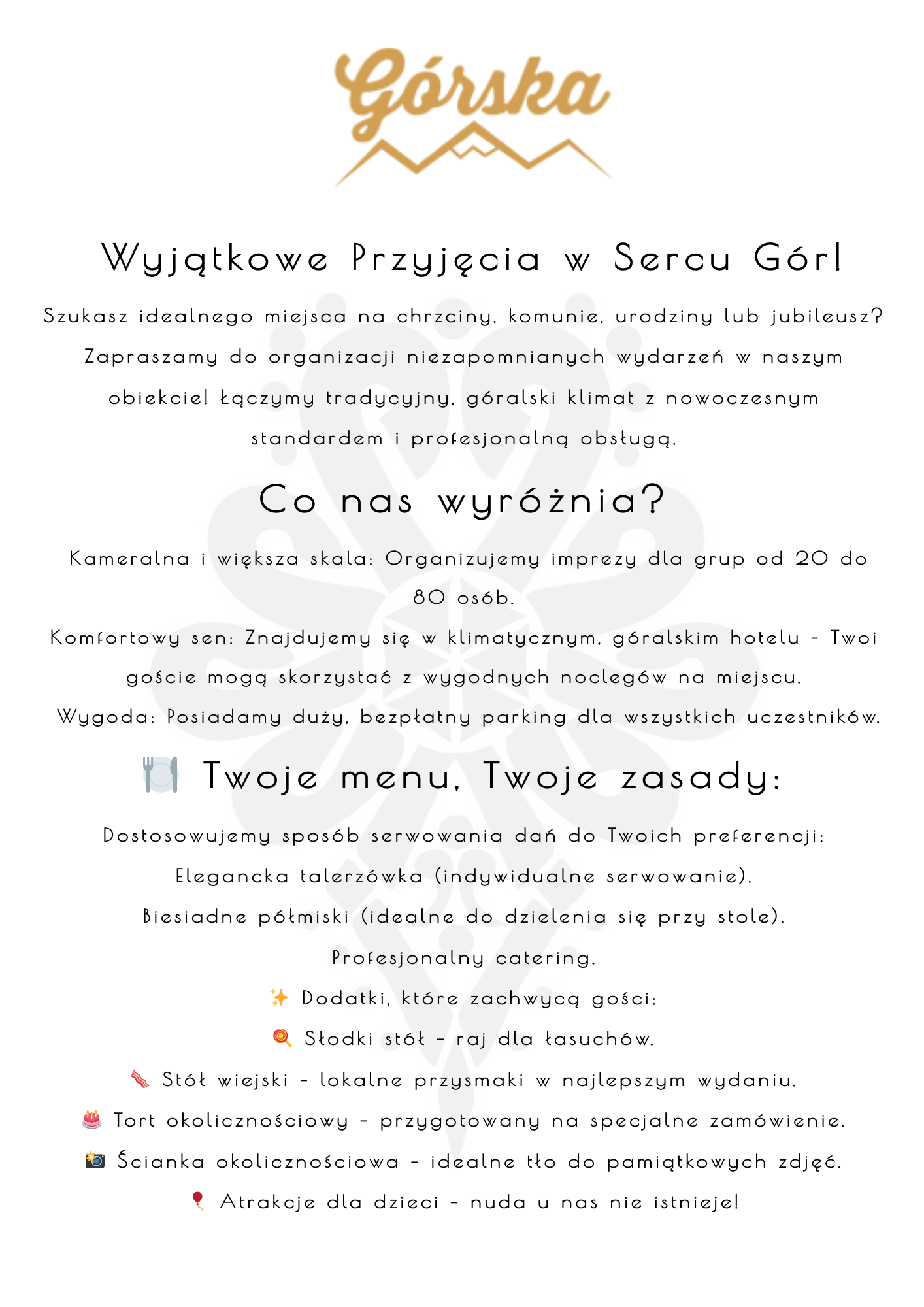 Masz pytania? Chciałbyś dowiedzieć się więcej o organizacji przyjęć w Restauracji Górskiej